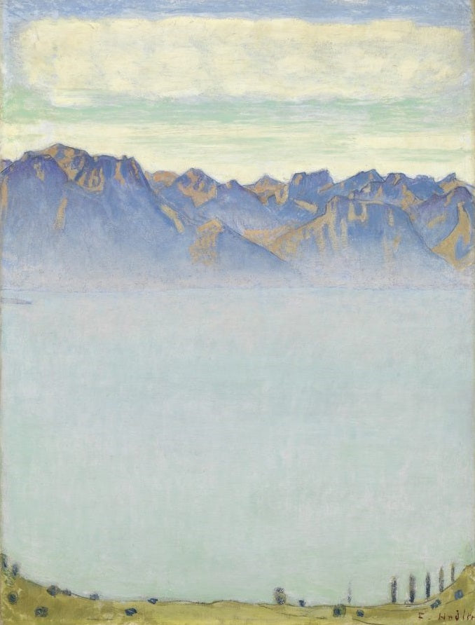 Le tableau de Ferdinand Hodler de 1907, Le Léman et les Alpes savoyardes, dépeint un paysage serein et magnifique de collines ondulantes et d'eaux bleues, dont la lumière vive au centre du tableau souligne la beauté. Un sentiment de paix est palpable dans cette œuvre d'art alors que la lumière du soleil effleure doucement chaque partie de la toile. Le paysage montagneux est parsemé d'arbres et d'arbustes, tandis que l'on voit plusieurs petits bateaux dériver sur le lac. Tout est réuni pour former une vision paisible que l'on pourrait presque confondre avec la réalité. Bien qu'elle ait plus de 100 ans, cette peinture reste incroyablement actuelle grâce à l'utilisation magistrale de la lumière, de la profondeur et du trait par Hodler.