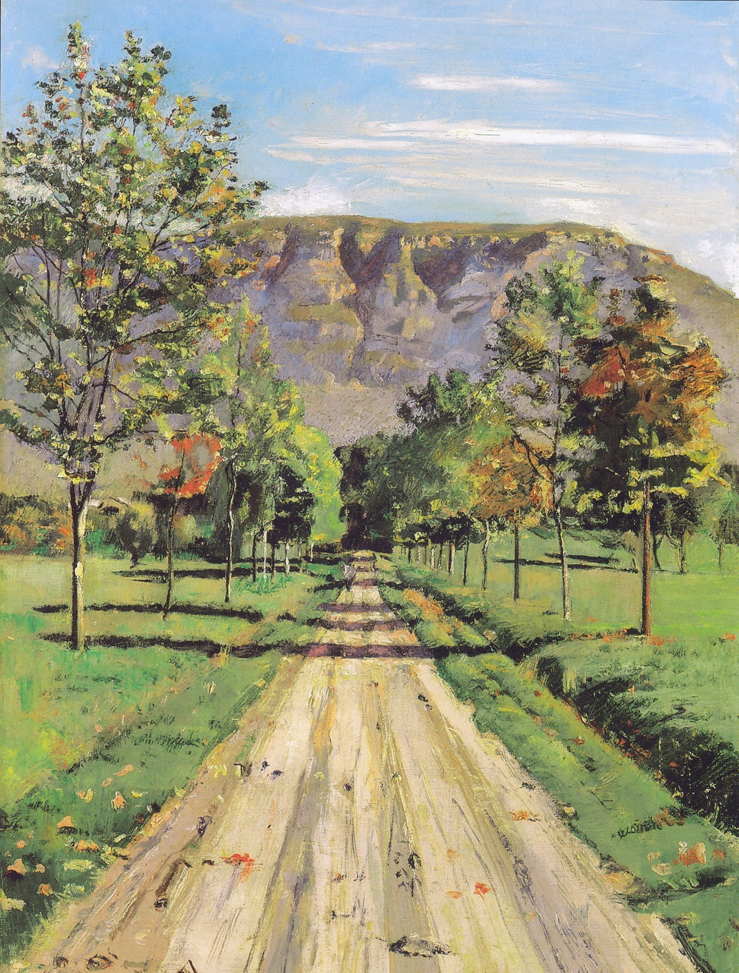 Le tableau de Ferdinand Hodler, La route vers Evordes, créé en 1903, montre une route énigmatique qui serpente dans un paysage balayé par le vent et peuplé d'arbres épars. La route attire le regard du spectateur, le conduisant vers les tons sourds, violets et roses, d'un ciel du soir. Pourtant, c'est ce qui se trouve au-delà de l'horizon - au sens propre comme au sens figuré - qui fait avancer l'histoire de cette œuvre. Un individu se tient à l'intersection de chemins divergents, s'éloignant d'une forme fortifiée évoquant une sorte de château ou de point d'observation. Cette figure, qui représente le spectateur lui-même, nous fait prendre conscience de notre liberté limitée et nous incite à réfléchir à la direction que prendra notre vie. Cette composition captivante apporte un sentiment de mystère et d'attente au spectateur et met l'accent sur notre responsabilité vis-à-vis de notre propre destin.